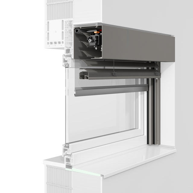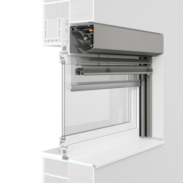 Die fünfeckige Kastenform lässt die bündige Integration in die Fassade zu. Aus- und Nachrüstung mit Insektenschutzgitter oder textilem Sonnenschutz ist auch hier möglich.