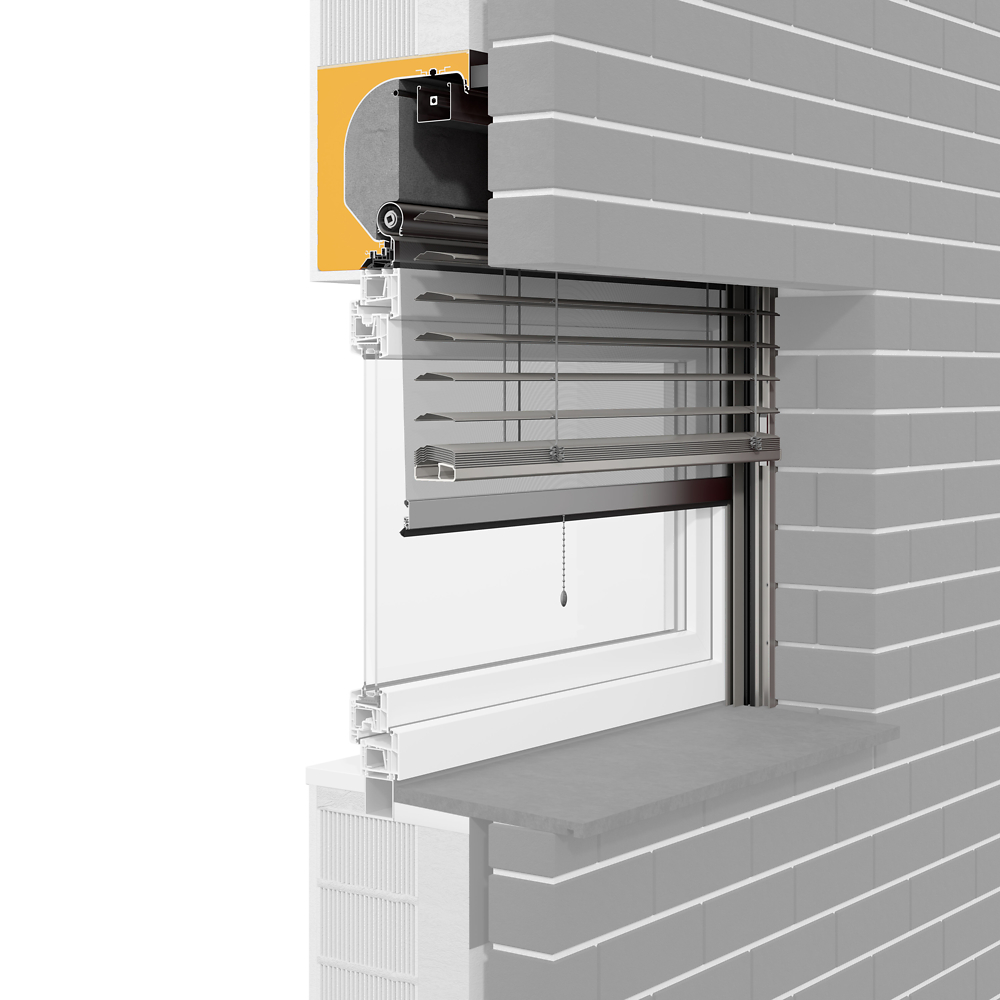 Aufsatzraffstorensysteme gibt es für Putz- und Klinkerfassaden inklusive der möglichen Auf- und Nachrüstung mit integriertem Insektenschutzgitter oder Motorbetrieb.