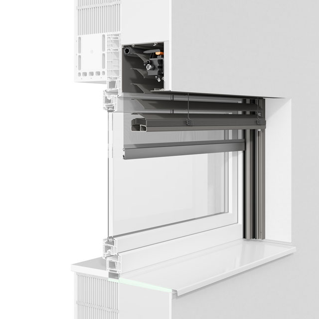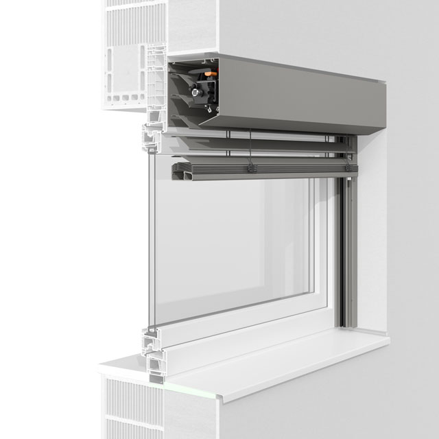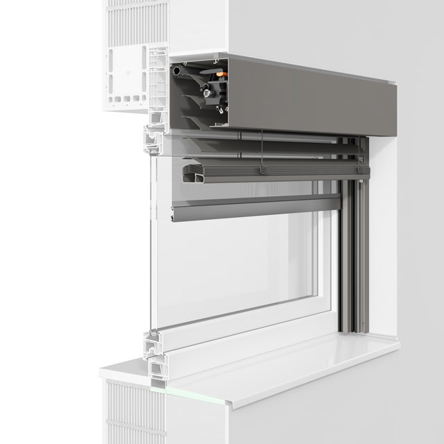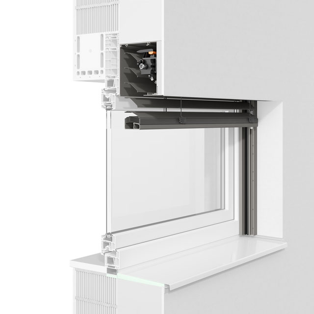 Die fünfeckige Kastenform lässt die bündige Integration in die Fassade zu. Aus- und Nachrüstung mit Insektenschutzgitter oder textilem Sonnenschutz ist auch hier möglich.
